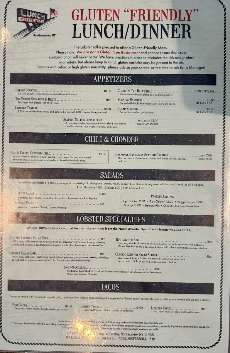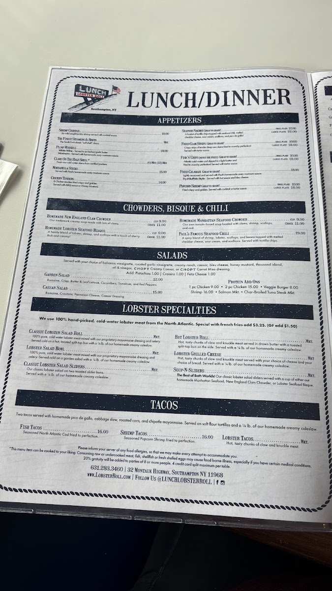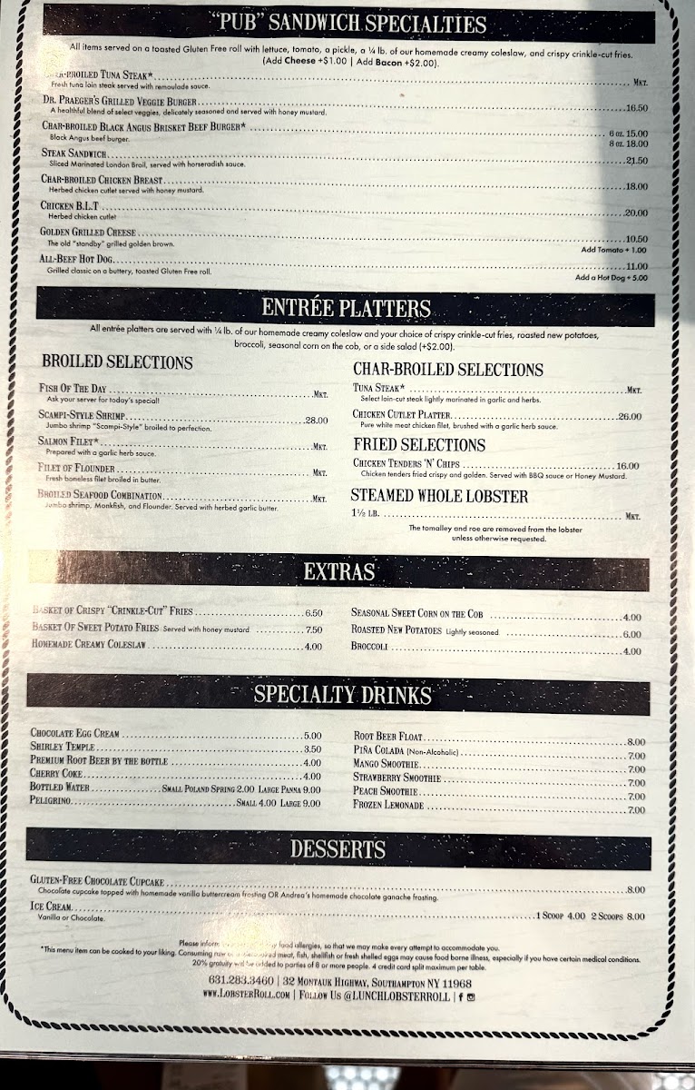 When you step into the charming Lobster Roll Restaurant, you're in for a treat. Located at 32 Montauk Hwy, Southampton, NY, this cozy spot serves up a menu filled with fresh, flavorful seafood. The star of the show? Their namesake lobster roll, which is a must-try for anyone craving the taste of summer. From crispy, golden fries to creamy chowders, the menu offers something for everyone, all made with the finest ingredients. Whether you’re here for a quick bite or a leisurely meal, you’ll find yourself enjoying the kind of casual, yet delicious dining experience that keeps you coming back. It's the perfect place to relax and savor each bite, surrounded by the laid-back vibes of Southampton.